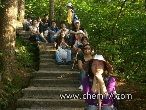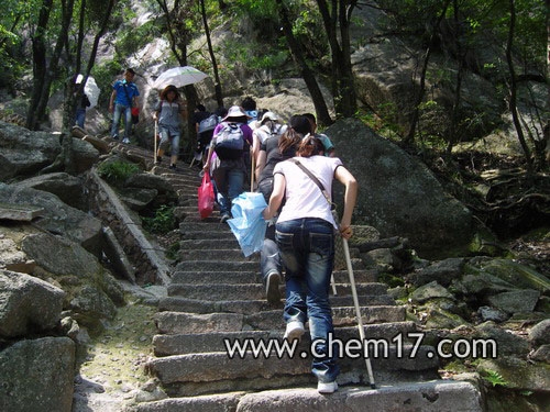 經過北海賓館,幾副領導的巨幅圖畫矗立,一看就不是平凡人能進入的領地,大家輕松的談論著如此昂貴的賓館值不值得,各持己見。外面的空地上已經搭起了不少帳篷,席地而臥的驢友們裝備齊全地準備起來。腿腳開始不聽使喚,不停地有人詢問導游還有多久能到達光明頂。