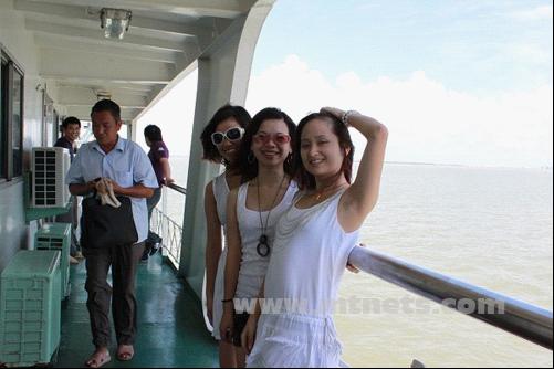 輪船上的白衣美女
