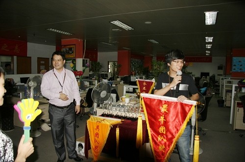 明通老員工,“資歷哥”詹玉明給虎隊(duì)PK勝出的同學(xué)頒發(fā)獎(jiǎng)金