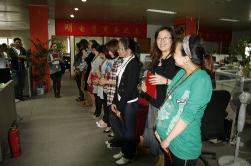 獲得三季度“杜拉拉”獎(jiǎng)的優(yōu)秀女同胞們,準(zhǔn)媽媽賀晶很搶眼哦