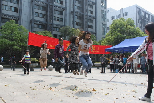 代表公司參與的有三個飛鏢隊,兩個跳繩隊,大家都是抱著重在參與的心態(tài)而報名的,平時就算想運動也因為沒有場地或者工作忙綠而不能如愿,所以一聽到這個活動,幾位想運動的同學(xué)第一時間報了名。