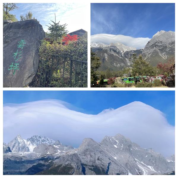 本想與玉龍雪山“4680”(這是目前游客可以到達玉龍雪山的最高海拔位置)來一場“心跳”的較量,但比較遺憾的是,由于當天風大(必備棉服、羽絨服、沖鋒衣),冰川公園大索道關閉,只能選擇云杉坪小索道上山(算是為下次再來玉龍雪山留下一點點念想吧)。