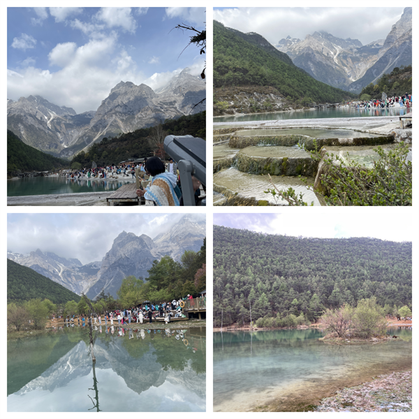 玉龍雪山腳下的藍月谷,像做了一個“關于藍色”的夢!第一次看到水的顏色是藍色,而且山谷呈月牙形,遠看就像一輪藍色的月亮鑲嵌在玉龍雪山腳下。看到此景,整個人的心情瞬間放松下來,感覺高原反應又“消失”了。