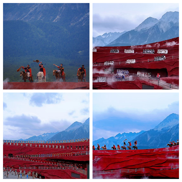 《印象麗江》是張藝謀導演的“印象系列”之一,雖然全程不太能聽懂,但確實是一場靈魂與視覺的盛宴。全劇共分古道馬幫、對酒雪山、天上人間、打跳組歌、鼓舞祭天和祈福儀式6個部分,演出以玉龍雪山為背景,搭建的紅色建筑為舞臺,融入民族文化風情,以當地農民做演員,在海拔3100米的玉龍雪山甘海子藍月谷露天劇場,真馬、真景、真情的表演,整個演出可謂是震撼人心!