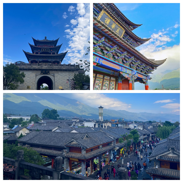 “一水繞蒼山,蒼山抱古城”大理古城東臨洱海,西枕蒼山,南北縱向有三條大街,東西向有五六條小巷,站在五華樓城樓上,古城的景色盡收眼底。