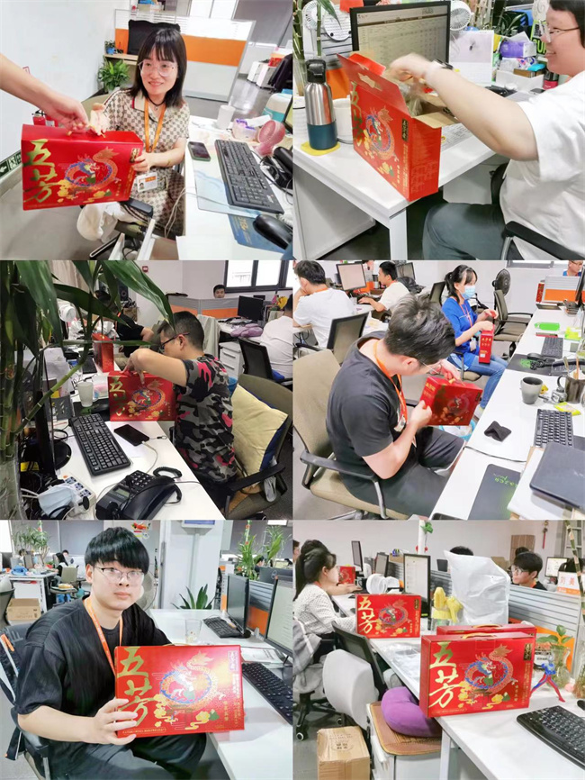 一箱箱飽含著關愛和祝福的端午禮盒“奔赴”到各個崗位,傳遞到每一名員工手中,公司上下洋溢在一片溫馨和諧的喜慶氣氛中。