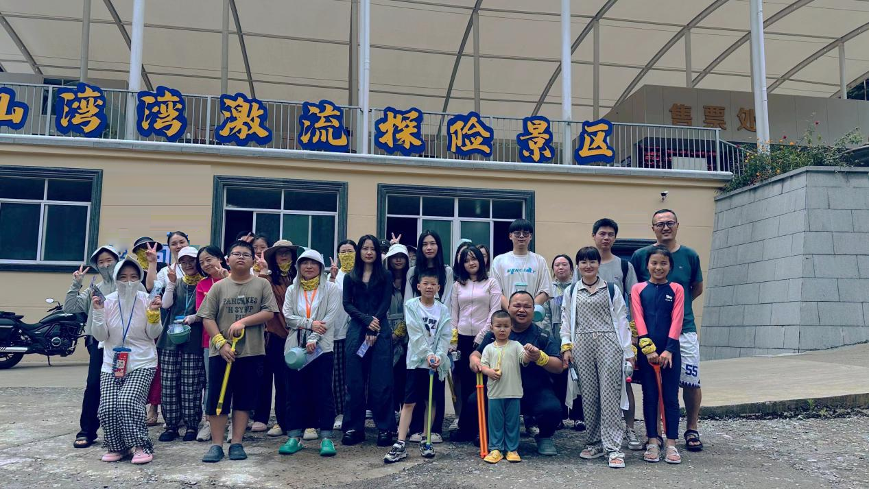 穿過漫無邊際的田野農莊、山林竹海,行至目的地山灣灣景區,小伙伴激動之情更盛,于景區平臺前合影打卡,記錄下美好瞬間。