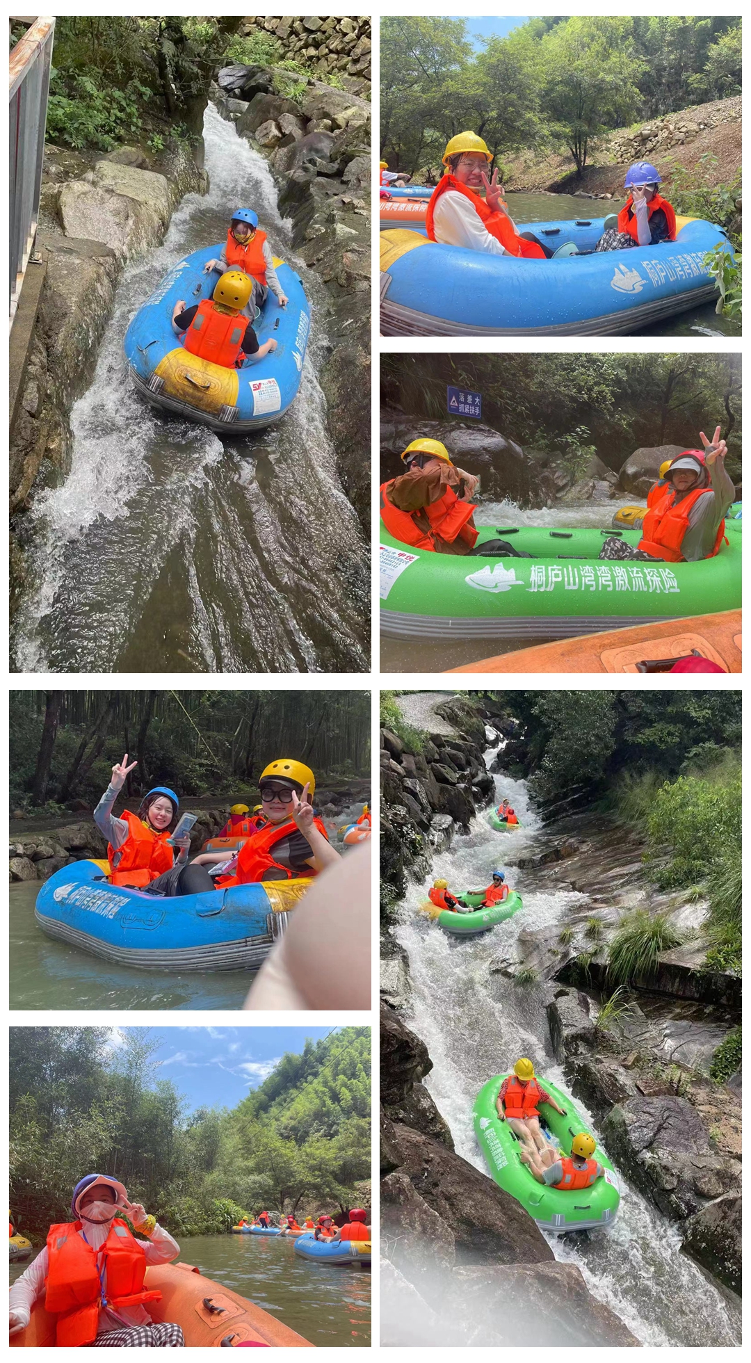 “大落差 大速度 大刺激 大景觀”,208米垂直落差,水量磅礴!乘坐擺渡車直奔起點,透過沿途近在耳邊的嘩嘩水聲才真切感受到,桐廬第一“賽級”河道漂流名副其實。從頭到腳全副武裝,小伙伴們倆倆結隊,一鼓作氣,乘著皮劃艇在山石夾縫中飛流直下,與林蔭下清涼的溪水撞個滿懷。