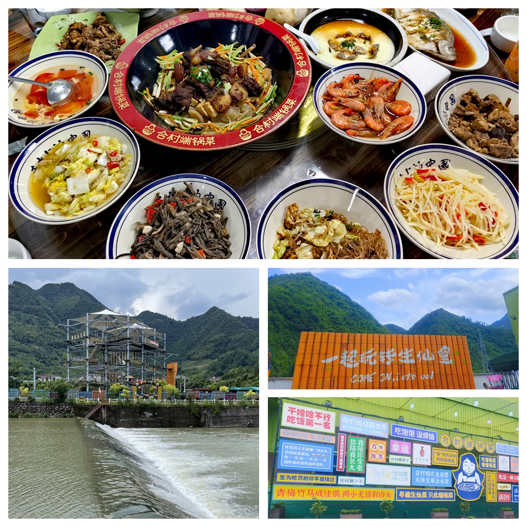 此次打卡的“農家小院”也頗有些設計感,由廠房改建而成,獨立于山野之外,卻不失人間煙火氣。有著桐廬地方風味的特色菜品已提前備好,葷素搭配、咸淡適中,正符合小伙伴們的胃口,分分鐘上演“光盤行動”。