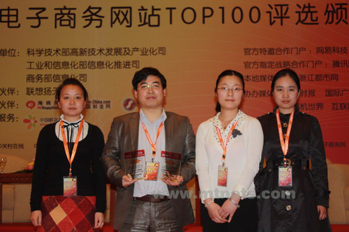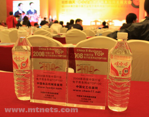 2009年4月17日-18日,“中小企業(yè)電子商務(wù)應(yīng)用發(fā)展大會(huì)暨2008第四屆中國(guó)行業(yè)電子商務(wù)網(wǎng)站TOP100評(píng)選頒獎(jiǎng)盛典”在“行業(yè)網(wǎng)站總部基地”——浙江寧波隆重舉行。17日下午,激動(dòng)人心的電子商務(wù)網(wǎng)站TOP100評(píng)選頒獎(jiǎng)更是掀起此次千人盛典的高潮,明通旗下兩大實(shí)力網(wǎng)站,中國(guó)化工儀器網(wǎng)www.chem17.com和中國(guó)食品機(jī)械設(shè)備網(wǎng)www.foodjx.com均獲得“中國(guó)行業(yè)電子商務(wù)網(wǎng)站TOP100”榮譽(yù)。