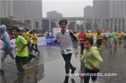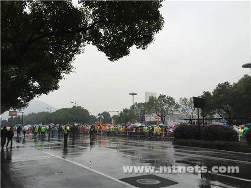 11月1日,天公不作美,下起了小雨,最低氣溫也只有12攝氏度,還有3級(jí)大風(fēng),寒意逼人,但這雨絲毫沒有影響到馬拉松跑友們高漲的熱情。上午8時(shí),2015杭州馬拉松在杭州黃龍?bào)w育中心廣場(chǎng)鳴槍開跑。
