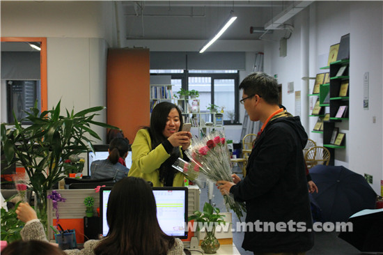 昨天是三八國(guó)際女神節(jié),興旺寶明通200多位女王們享受了半天的法定假期,除此之外,明通里的幾位單身男士給每一位女伙伴獻(xiàn)花,這一意外的溫馨舉動(dòng)讓好多女王們歡樂(lè)不已!興旺寶明通向來(lái)男女平等,從管理團(tuán)隊(duì)到下屬員工,女性占了一半還多,來(lái)看一下昨天男生們的獻(xiàn)花照片吧!