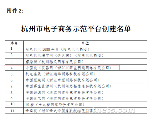 為了響應號召,杭州市電子商務工作聯(lián)席會議辦公室積極開展杭州市電子商務示范工程創(chuàng)建工作,經(jīng)各區(qū)、縣(市)商務主管部門對申報企業(yè)進行審核推薦,杭州市電子商務示范工程專家委員會評審,目前已確定45家杭州市電子商務示范企業(yè),11個杭州市電子商務示范平臺、8家杭州市電子商務示范基地(園區(qū))名單。興旺寶明通旗下中國化工儀器網(wǎng)榮獲“杭州市電子商務示范平臺”稱號。