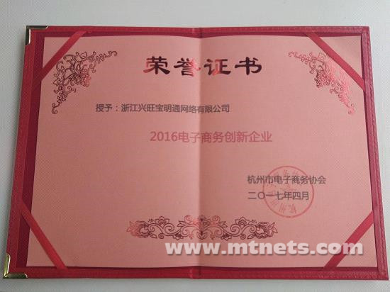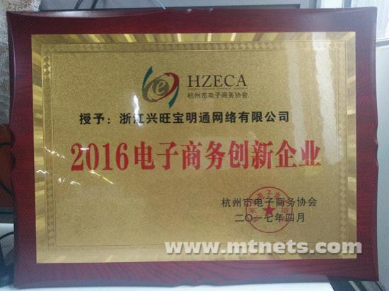 2017年4月13日,“杭州市電子商務協會第四屆理事會換屆大會”在杭州如期召開。理事會上,協會對2016年度工作報告以及2017年工作計劃作了詳細介紹,并對2016年度杭州市電子商務協會優秀企業進行了表彰。興旺寶明通憑借雄厚實力榮膺“2016電子商務創新企業”稱號,可喜可賀。