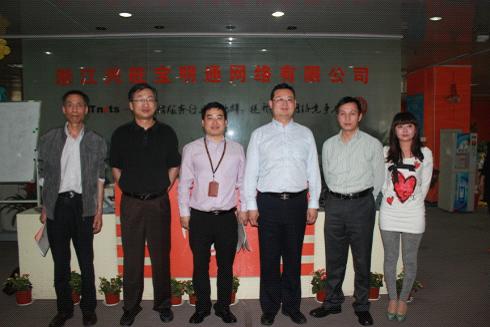 4月27日下午,西湖區委員會常委金承濤、西湖區科技局局長姚建明、副局長陸翔蒞臨浙江興旺寶明通網絡有限公司參觀指導。興旺寶明通總經理陳勝明表示對領導的到訪感到十分榮幸,并就公司目前發展狀況和所面臨的困難作了詳細報告。