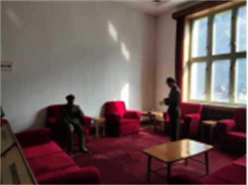 地下室有4,000平米的坑道,悠長陰暗,深不見底,是林彪的軍事秘密基地,坑道兩側用圖片記錄展示著部分國內外地下軍事工程。
